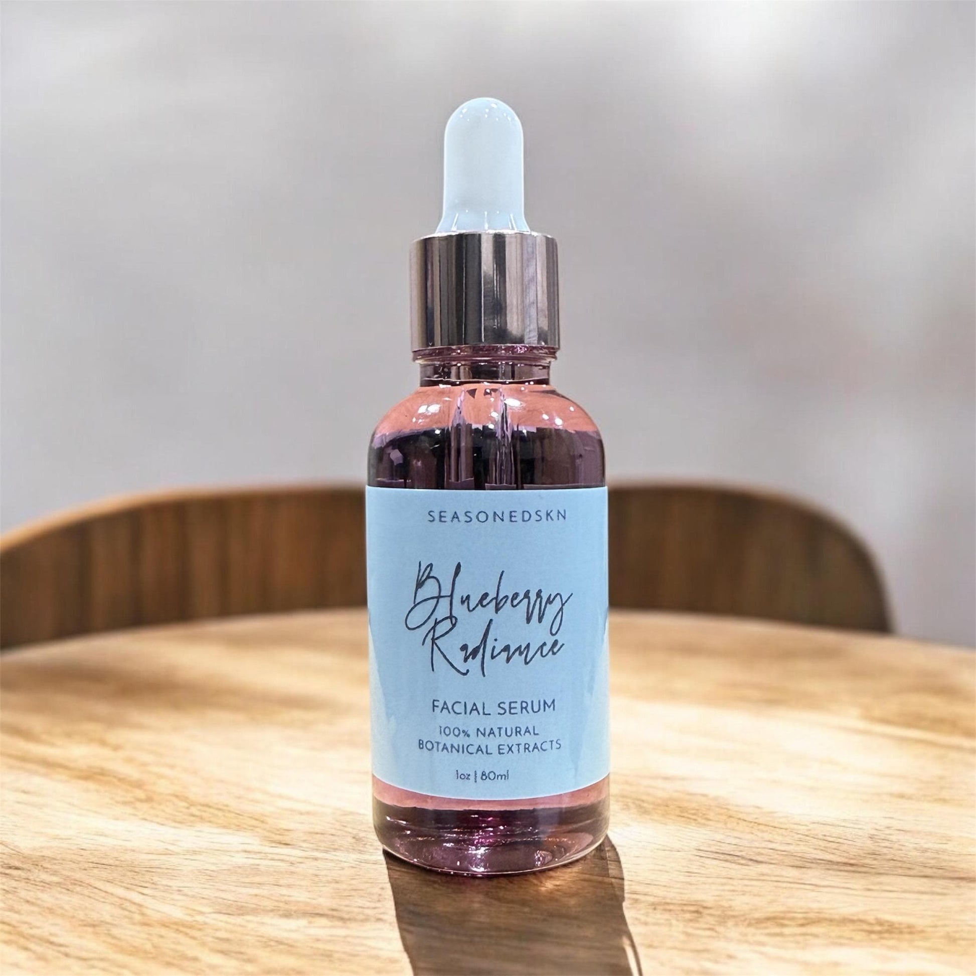Elevate your skincare routine with the Blueberry Radiance Facial Serum and experience the natural glow of healthy, revitalized skin.